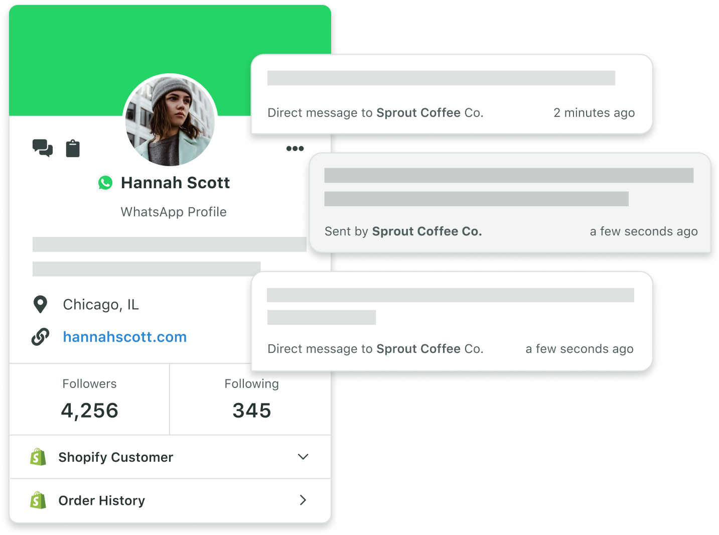 Scale your efforts for faster responses by seeing and responding to WhatsApp messages in the same inbox as your other social and messaging networks.